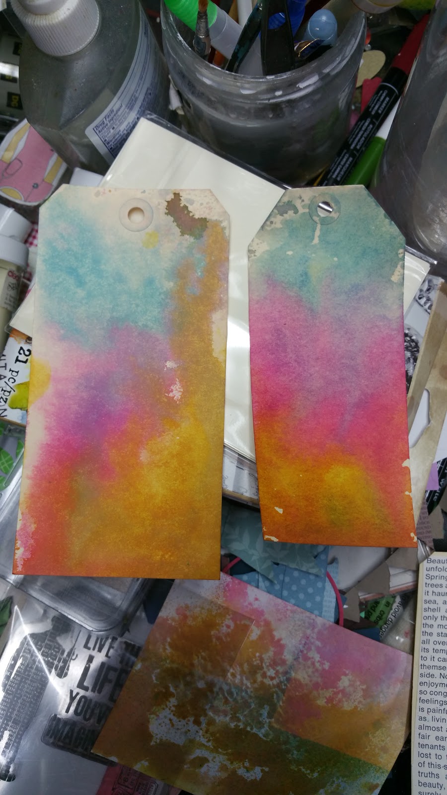 | Used the wrinkle free distress technique to pick up sprayed ink. |